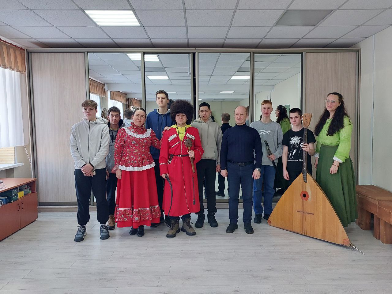 Марина Викторовна Гришина, заведующий отделом казачьей культуры, рассказала подросткам версии о том, как образовалось казачество, об основных его символах и традициях. Желающие примеряли на себя форменную одежду, подержали в руках шашку, нагайку и даже бас-балалайку. В завершение Андрей Александрович Гришин, ведущий методист отдела казачьей культуры продемонстрировал запись своего исполнения старинного казачьего романса «Не для тебя».