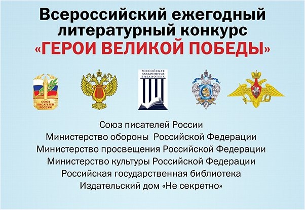 Родины, а также военнослужащих, участвовавших в локальных войнах и военных конфликтах, для воспитания у подрастающего поколения чувства патриотизма и гордости за подвиги воинов-героев, для сохранения военно-исторического наследия России, Организаторы конкурса проводят Всероссийский ежегодный литературный конкурс «Герои Великой Победы» на лучший литературный рассказ, очерк, стихотворение, рисунок, фотографию и текст песни эпического, исторического и военно-патриотического содержания.