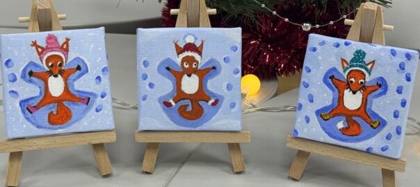 На маленьких полотнах юные участники создавали изображение милого бельчонка, который раскинул лапки на мягком снегу и с удовольствием выводит своего снежного ангелочка. Каждая работа оказалась особенной — уютной, весёлой и полной зимнего волшебства, словно кусочек снежной истории.
