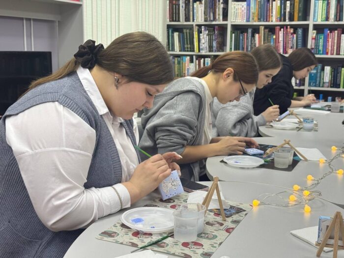 10 декабря в Юношеской библиотеке для учащихся школы №4 прошёл мастер-класс по рисованию на мини-холстах «Снежный ангел».
