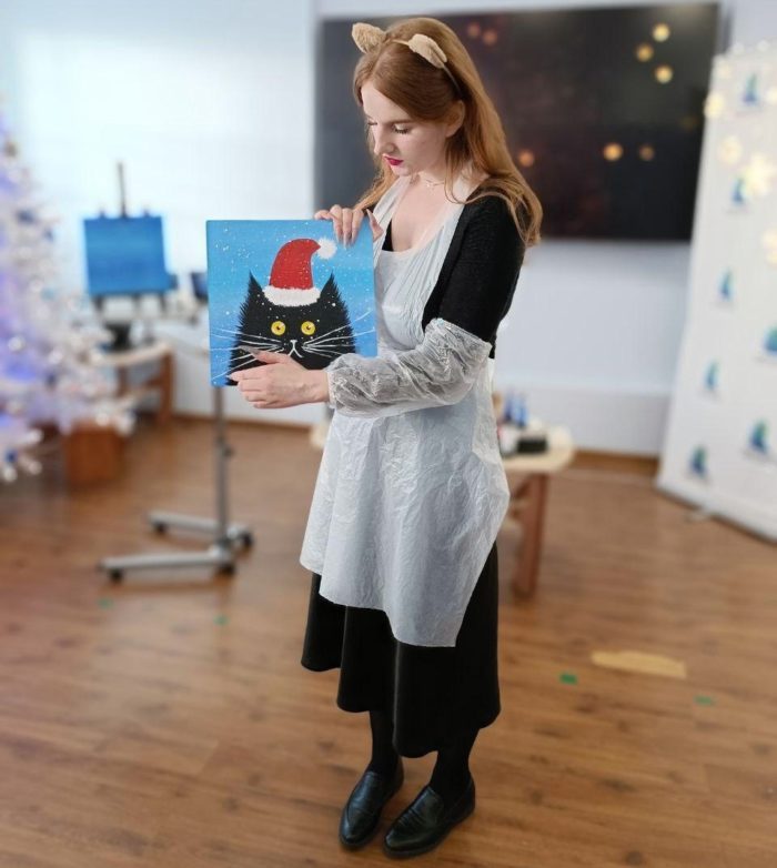 Все суетятся с подарками и куда-то спешат, но участникам студии живописи «Скрестим кисти» не о чем волноваться. Ведь они уже сделали для себя или своих родных хороший подарок — картину с милым символом наступающего года. В ходе занятия 24 декабря участники познакомились с основными техниками рисования акрилом и изобразили на квадратном холсте уникальный рисунок «Пушистый котик». Симпатичный зверек в шапочке Деда Мороза — главный символ наступающего 2023 года!