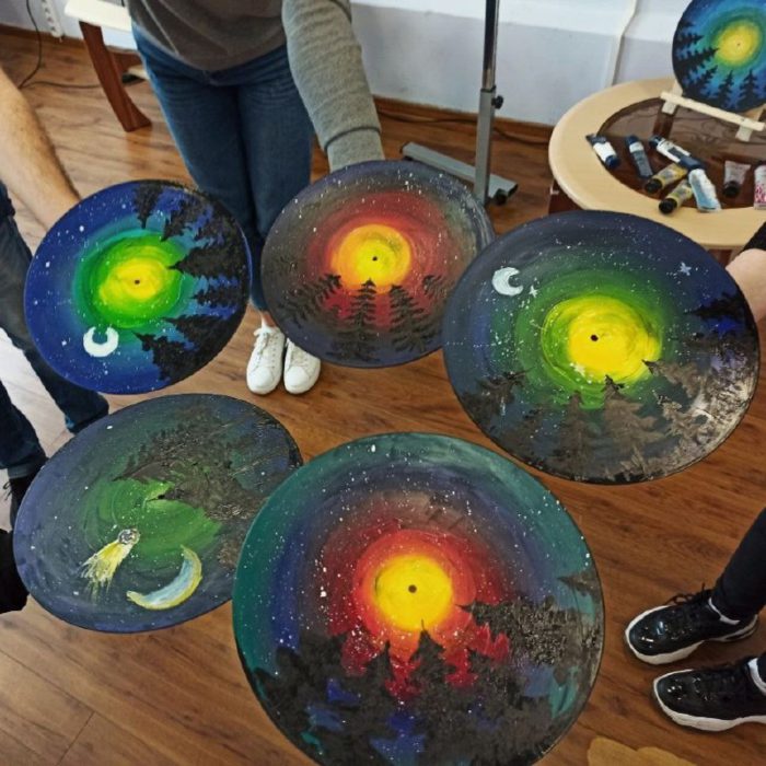 Невероятной красоты небо, усыпанное сотнями звезд, величественные кроны деревьев — целый мир на одной маленькой пластинке. Побывав на мастер-классе по рисованию, вы окунетесь в атмосферу спокойствия гармонии, творчества и магии. Рисовать может каждый, нужно лишь капля терпения, немного свободного времени и ваше желание творить. Всему остальному вы научитесь в Юношеской.