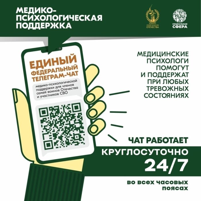 В России работает Единый федеральный телеграм-чат медицинской психологической поддержки для членов семей воинов Отечества и участников СВО. Continue reading
