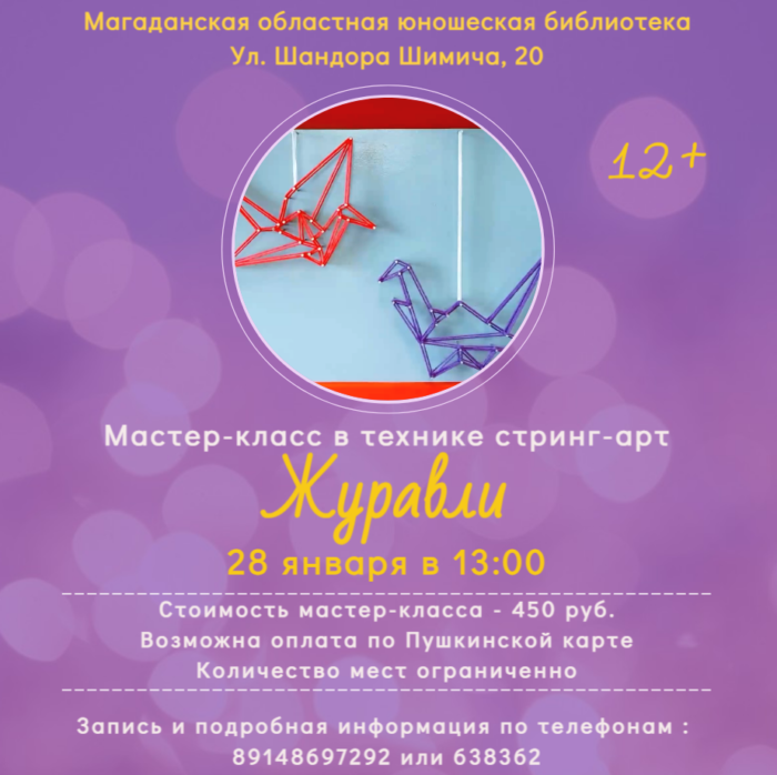 Друзья! Мы рады сообщить вам о новом мастер-классе «Журавли» в технике стринг-арт! (далее…)